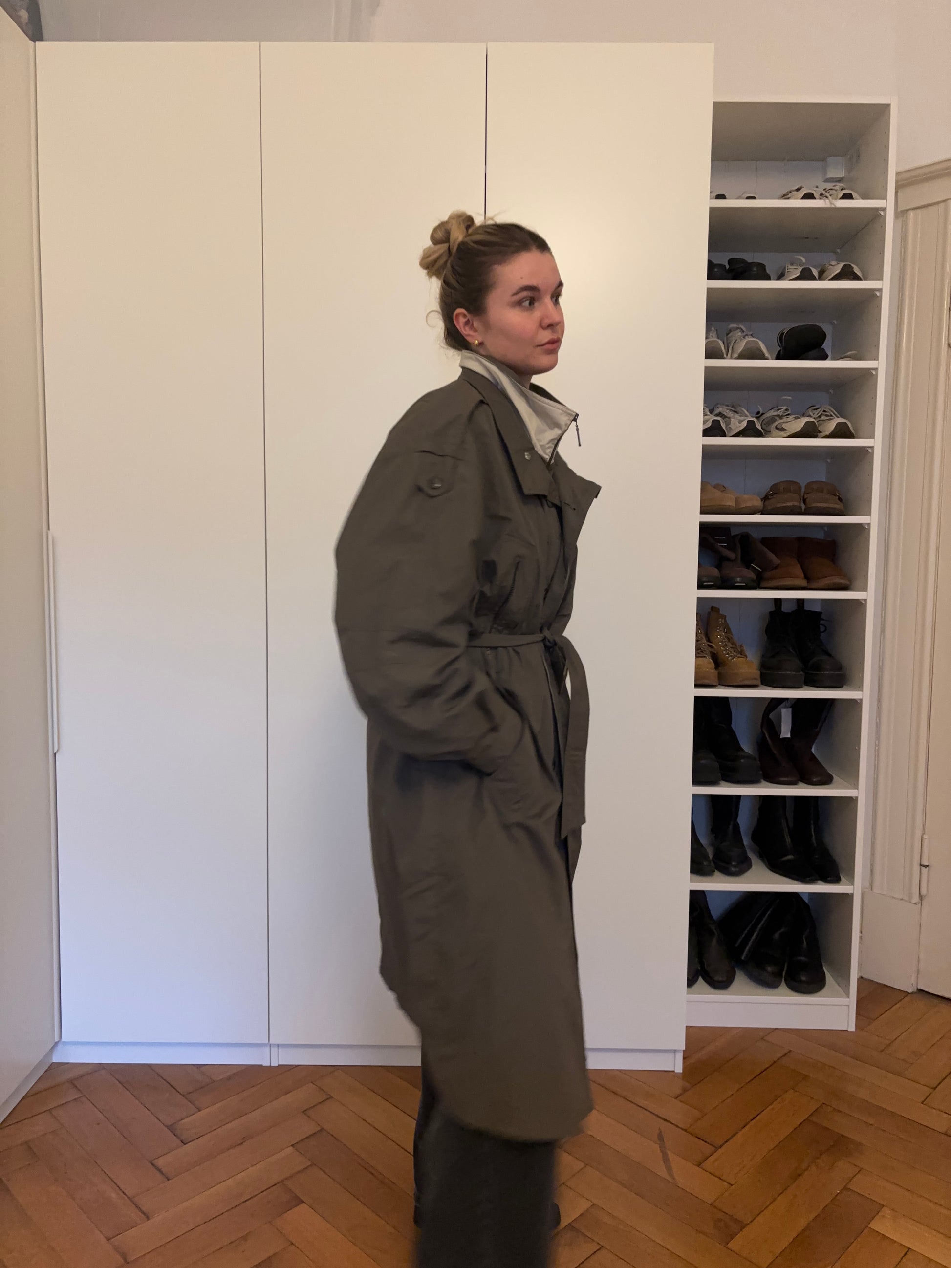 Vintage Trenchcoat Damen – wasser- & winddicht | Oversized Funktionsmantel in Olivgrau